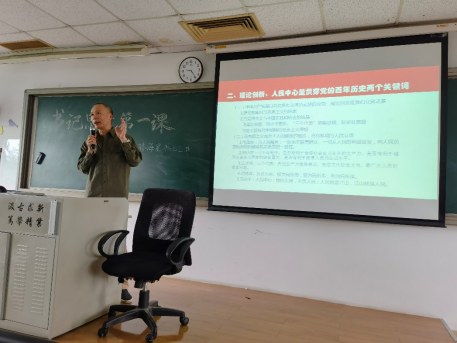 3月16日上午,林海星书记为2019级国际经济与贸易专业员工讲授思政课。林书记以《明理、增信、崇德、力行》为主题展开思政课。林书记梳理了党的历史脉络,回顾一百年的奋斗历程,阐述了理论创新、以人民为中心是贯穿党的百年历史两个关键词。他回顾遵义会议、十一届三中全会等党的历史上的重要会议和重要决议,阐述作风建设和反腐败是党永葆纯洁的政治自觉。他深刻分析历史虚无主义的荒谬逻辑和危害,引导同学们坚定立场,坚决反对历史虚无主义,树立正确历史观。课上,四名员工党员结合自身探访抗美援朝老军人,参观革命历史博物馆的经历分享了自己学习党史的感悟。
