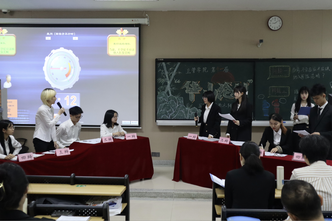 本届辩论赛的辩题为(1)“当前,不孕症是否应该纳入医保范畴?”(2)“推行医共体建设是否可以化解大医院的“虹吸”效应”?辩论开始前,校团委武夏林副书记发言。她提到“华山论剑”辩论赛有11年的开办历史,深受同学老师的喜爱,同时“华山论剑”辩论赛也是非常有意义的一项活动,能够培养同学们的逻辑思维和思考表达能力,并预祝本次活动能够取得圆满成功。